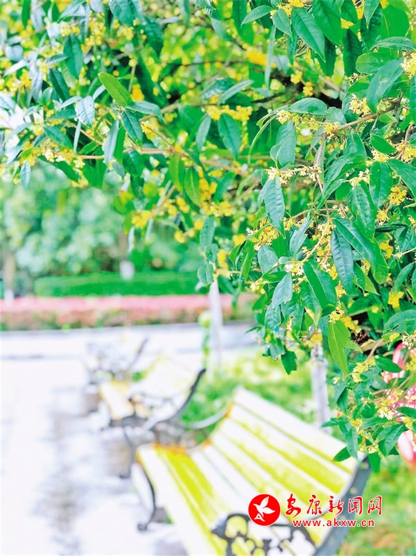 桂花開(kāi)放,濃郁的花香撲面而來(lái)。
