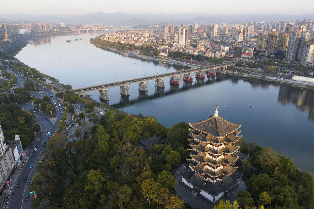 漢江流過的安康市城區(qū)景色(11月5日攝,無人機(jī)照片)。新華社記者邵瑞攝