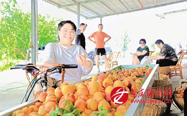 功夫不負有心人。近年來,在各級黨委、政府的幫助下,現(xiàn)代化的保鮮庫建起來了,解決了鮮桃儲運的難題;相關(guān)部門組織的助農(nóng)電商培訓,讓她學會了如何將深山里的甜桃“捧”上“云端”。通過開網(wǎng)店、在微信朋友圈推廣等方式,她家桃子的銷路越來越廣。今年春天,關(guān)廟鎮(zhèn)政府還在她的桃園里成功舉辦了首屆桃花節(jié),李丹坐在心愛的電動三輪車上,熟練地進行著網(wǎng)絡(luò)直播,鏡頭緩緩掃過綴滿粉嫩花苞的桃林,她微笑著說出了一句令無數(shù)網(wǎng)友為之動容的話:“以前總覺得輪椅是我的桎梏,困住了我,現(xiàn)在我才發(fā)現(xiàn),原來坐著也能丈量春天、擁抱世界。”Rh9安康新聞網(wǎng)