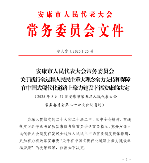 本網(wǎng)訊(通訊員 周清華 張凡)8月27日,安康市五屆人大常委會第二十六次會議作出《安康市人民代表大會常務(wù)委員會關(guān)于踐行全過程人民民主重大理念全力支持和保障在中國式現(xiàn)代化道路上聚力建設(shè)幸福安康的決定》(以下簡稱《決定》),并自印發(fā)之日起實(shí)施。以地方人大常委會作出重大事項(xiàng)決定的形式,將黨的主張通過法定程序轉(zhuǎn)化為全體人民的共同意愿,是安康市人大常委會強(qiáng)化擔(dān)當(dāng)、依法履職的創(chuàng)新實(shí)踐,是圍繞中心、服務(wù)大局的務(wù)實(shí)舉措,必將為在中國式現(xiàn)代化道路上聚力建設(shè)幸福安康注入堅(jiān)實(shí)的人大力量。u8n安康新聞網(wǎng)