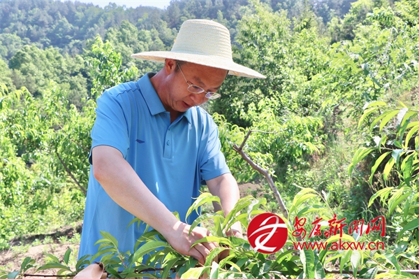 陜煤集團派駐漢陰縣雙河口鎮(zhèn)幸和村第一書記高勇正在給桃樹套袋dNu安康新聞網(wǎng)