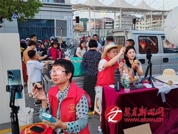 △ 漢陰縣蒲溪鎮(zhèn)第一書記組團(tuán)在縣村超比賽場(chǎng)地外直播賣桃子,累計(jì)幫銷紅桃2.8萬余斤。QTm安康新聞網(wǎng)