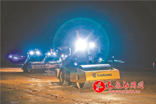 安康新聞網(wǎng)訊(記者 吳單 潘潤生)近200臺(tái)翻斗車來回穿梭運(yùn)送土石方,重達(dá)20噸的吊錘反復(fù)被大型強(qiáng)夯機(jī)從幾十米高空拉起、拋下,發(fā)出聲聲巨響,百米之外仍能感受到夯地的震動(dòng)感。腳手架上、交通路口,工人們有條不紊地進(jìn)行著作業(yè)、指揮著交通……夜幕下的機(jī)場(chǎng)施工現(xiàn)場(chǎng)一片繁忙。