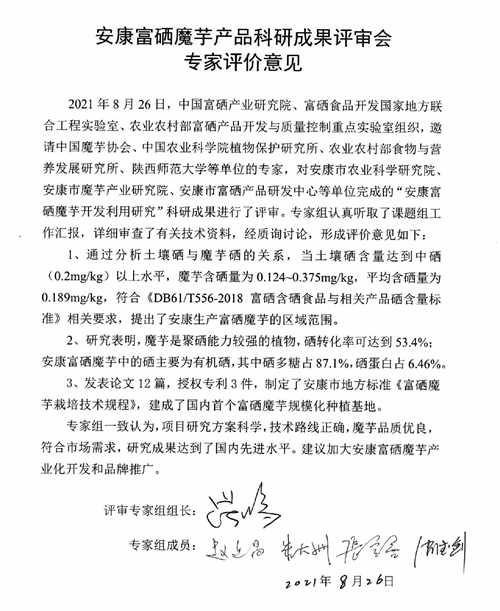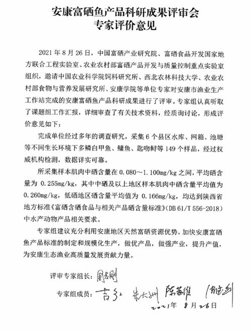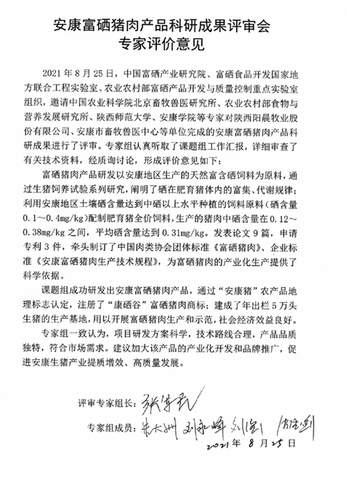 本次評審中,專家組認真聽取了課題組工作匯報,詳細審查了有關(guān)技術(shù)資料,經(jīng)質(zhì)詢討論后一致認為:四大富硒特色產(chǎn)業(yè)課題研發(fā)方案科學、技術(shù)路線合理,研究成果達到國內(nèi)先進水平,天然富硒是安康得天獨厚的資源優(yōu)勢,培育開發(fā)出的產(chǎn)品品質(zhì)優(yōu)良,符合市場需求。建議充分利用安康地區(qū)天然富硒資源優(yōu)勢,加快富硒特色產(chǎn)業(yè)標準的制定和規(guī);a(chǎn),做優(yōu)產(chǎn)品、做強產(chǎn)業(yè)、提升產(chǎn)值,加大該產(chǎn)品的產(chǎn)業(yè)化開發(fā)和品牌推廣力度,促進產(chǎn)業(yè)提質(zhì)增效。Msg安康新聞網(wǎng)