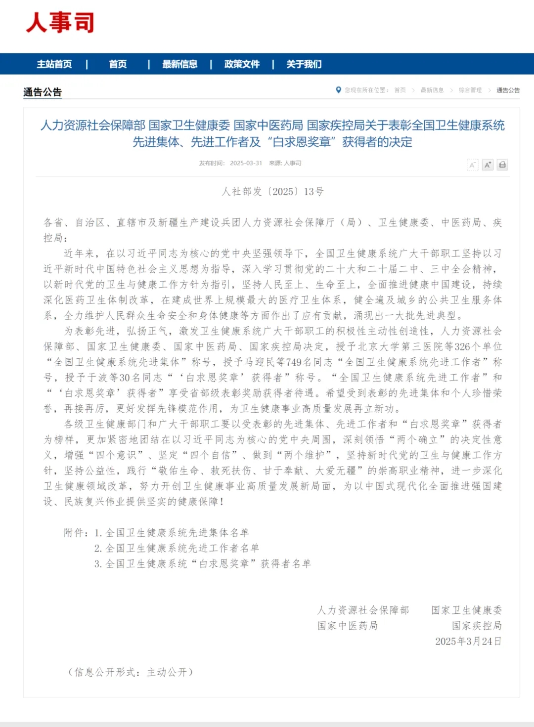 近日,人力資源社會(huì)保障部、 國(guó)家衛(wèi)生健康委等四部委發(fā)布關(guān)于表彰全國(guó)衛(wèi)生健康系統(tǒng)先進(jìn)集體、先進(jìn)工作者及“白求恩獎(jiǎng)?wù)?rdquo;獲得者的決定,我市1個(gè)集體、1人分別獲得全國(guó)衛(wèi)生健康系統(tǒng)先進(jìn)集體、全國(guó)衛(wèi)生健康系統(tǒng)先進(jìn)工作者榮譽(yù)稱(chēng)號(hào)。f6r安康新聞網(wǎng)