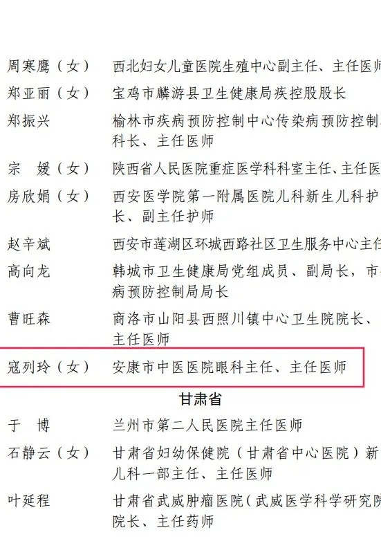 我市全國(guó)衛(wèi)生健康系統(tǒng)先進(jìn)集體、先進(jìn)工作者名單:f6r安康新聞網(wǎng)