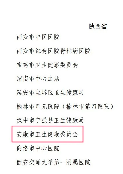 安康市衛(wèi)健委榮獲全國(guó)先進(jìn)