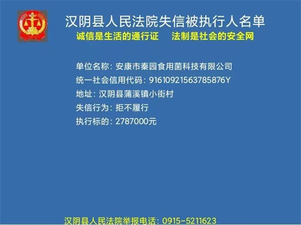 曝光失信 | 漢陰法院失信被執(zhí)行人曝光名單 (2022年第二批)