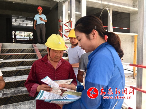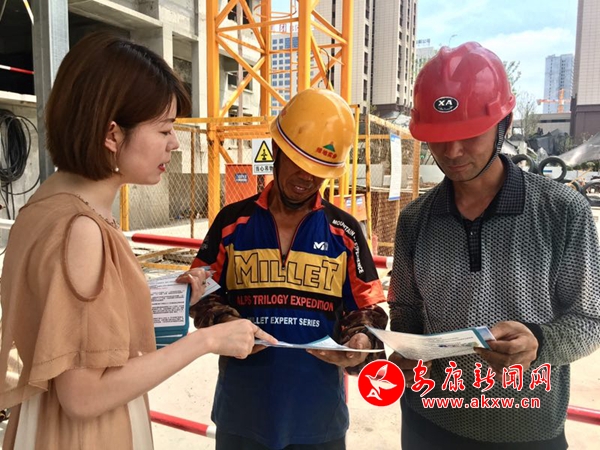 在高新區(qū)部分建筑工地,安康市和漢濱區(qū)人社部門通過擺放咨詢臺、放置展板、發(fā)放印制的宣傳資料、現(xiàn)場答疑等形式,對《社會保險法》《工傷保險條例》在維護職工權(quán)益方面的重要意義、工傷保險參保繳費政策、工傷認定申辦程序以及工傷保險待遇等方面進行宣傳。