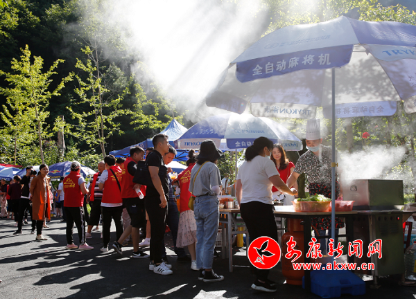 會(huì)場(chǎng)周?chē)母黝?lèi)鎮(zhèn)坪長(zhǎng)壽美食吸引了眾多游人駐足品嘗。