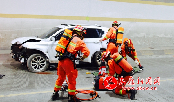 本網(wǎng)訊(記者 張喬)“報告,接110指令,541國道151KM+000M處柏枝埡隧道內(nèi)發(fā)生一起小轎車與危險化學品運輸車發(fā)生追尾碰撞交通事故,可能發(fā)生;沸孤缎孤、燃燒爆炸和人員傷亡”。 為提高國省干線公路隧道突發(fā)事件應(yīng)急處置能力,檢驗干線公路突發(fā)事件應(yīng)急預(yù)案可行性,11月22日,安康公路管理局2019年度干線公路隧道救援應(yīng)急演練在G541線K151+000嵐皋縣柏枝埡隧道舉行。