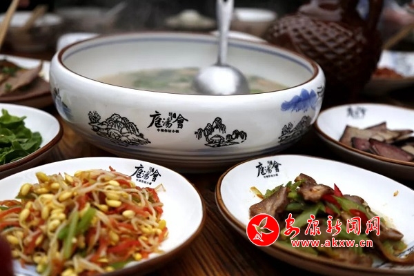 庖湯會(huì)的重點(diǎn)是吃“庖湯宴”。下午四點(diǎn),庖湯宴正式開席。賓客8人一組圍桌而坐,28道石泉庖湯宴美食依次登場(chǎng)上桌,說菜人口吐蓮花,菜越說越香;酒歌高亢,越喝越暖;競(jìng)?cè)ち遥匕蜐h子劃出豪邁風(fēng)采;作坊小鎮(zhèn)聲動(dòng)震天,年味香飄十里。