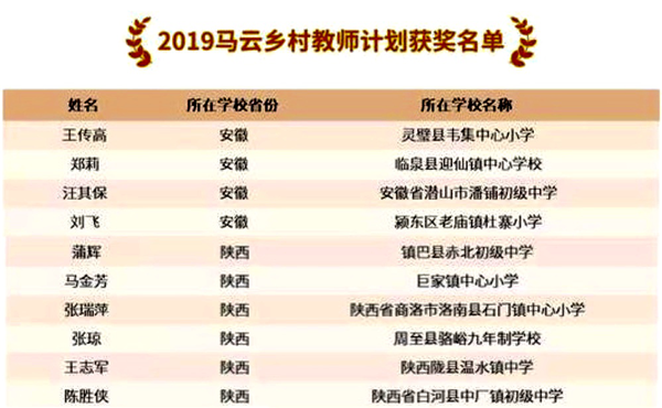 據(jù)了解,今年獲獎的100位鄉(xiāng)村教師來自全國24個省、自治區(qū)、直轄市,平均年齡39歲,最小的只有23歲。截至最新,馬云鄉(xiāng)村教育系列項目累計已直接資助了500名鄉(xiāng)村教師、60名鄉(xiāng)村校長以及200名鄉(xiāng)村師范生,直接影響鄉(xiāng)村兒童近10萬人。更特別的是,有79%的入選者來自國家級貧困縣。