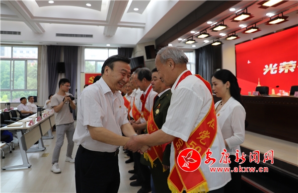 為慶祝中國共產(chǎn)黨成立100周年,今年黨中央首次向黨齡達到50周年、一貫表現(xiàn)良好的黨員頒發(fā)“光榮在黨50年”紀念章。據(jù)了解,經(jīng)各機關(guān)基層黨組織逐級統(tǒng)計、公示、審核,市直機關(guān)共有412名黨員符合上述條件。此次會議共邀請了10名老黨員代表到會,向他們頒發(fā)“光榮在黨50年”紀念章。