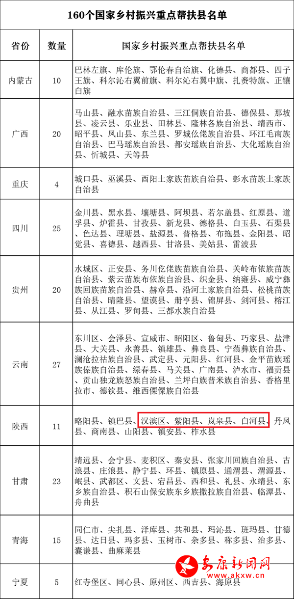 陜西省有11個縣被列入國家鄉(xiāng)村振興重點幫扶縣,其中,安康有4縣(區(qū)),分別為漢濱區(qū)、紫陽縣、嵐皋縣、白河縣。