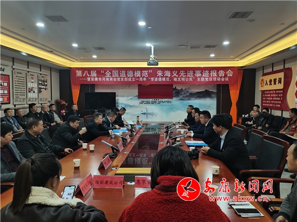 安康市河南商會黨支部書記趙士魁宣讀了關于號召商會全體黨員、全體會員積極向朱海義學習的《倡議書》,號召以朱海義為榜樣,用智慧和汗水,推動社會形成崇德向善、弘揚正氣的濃厚氛圍。