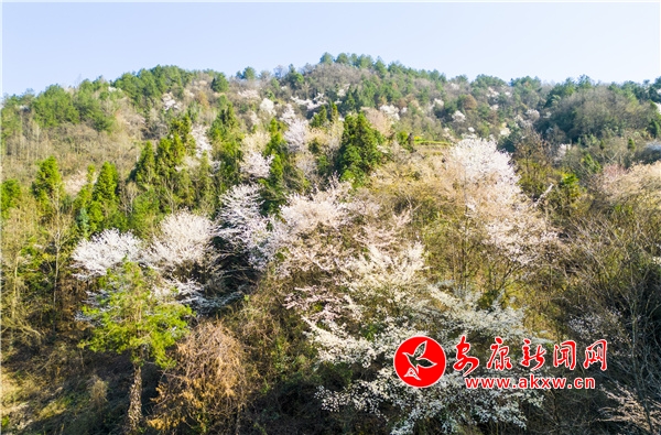 本網(wǎng)訊(記者 李俊 實(shí)習(xí)記者 卜昊天)近日,漢濱區(qū)晏壩鎮(zhèn)漫山的野生櫻桃花在和煦的春風(fēng)中競(jìng)相盛開。遠(yuǎn)眺山林,從山腳到山頂次第綻放,山澗幽谷處處粉白,民居藏于其中,宛若世外桃源,起伏的山脈被一簇簇壓滿整個(gè)枝頭的櫻桃花所覆蓋。