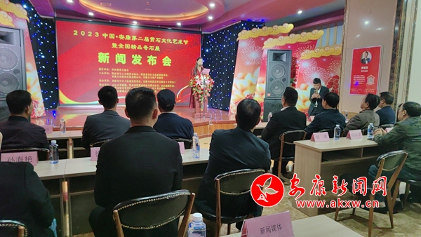本網(wǎng)訊(記者 趙漪湉)6月4日,2023中國(guó)安康第二屆賞石文化節(jié)藝術(shù)節(jié)暨全國(guó)奇石精品展舉行新聞發(fā)布會(huì)。活動(dòng)由省寶玉石觀賞石協(xié)會(huì)、省社區(qū)文化建設(shè)促進(jìn)會(huì)、安康龍舟文化產(chǎn)業(yè)發(fā)展有限公司、安康市文化產(chǎn)業(yè)協(xié)會(huì)主辦,安康市社區(qū)文化建設(shè)促進(jìn)會(huì)、安康社促會(huì)奇石協(xié)會(huì)承辦,漢江流域各省、市賞石(奇石)協(xié)會(huì)等有關(guān)單位協(xié)辦,將于第23屆中國(guó)安康漢江龍舟節(jié)期間在我市舉辦。uUe安康新聞網(wǎng)