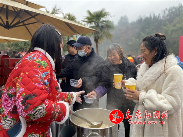 現(xiàn)場還開展了形式多樣的農特產品展銷、美食體驗等系列農文旅活動,讓現(xiàn)場群眾感受了新春“趕大集”的熱鬧氛圍。同時還進行了寫春聯(lián)、送福字、照全家福等年俗活動,為大家送上新春祝福。活動當天恰逢“臘八節(jié)”,主辦方制作了臘八粥,免費向觀眾提供。dpC安康新聞網