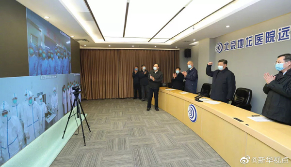 10日下午,習(xí)近平來到北京地壇醫(yī)院,察看新冠肺炎感染者住院診療情況,視頻連線武漢市重癥患者收治醫(yī)院,聽取中央指導(dǎo)組、湖北指揮部有關(guān)情況匯報,慰問奮戰(zhàn)在一線的醫(yī)務(wù)工作者。隨后,習(xí)近平前往朝陽區(qū)疾病預(yù)防控制中心,了解朝陽區(qū)開展應(yīng)急處置、流行病學(xué)調(diào)查、篩查報告和北京市疫情防控工作情況。pqE安康新聞網(wǎng)