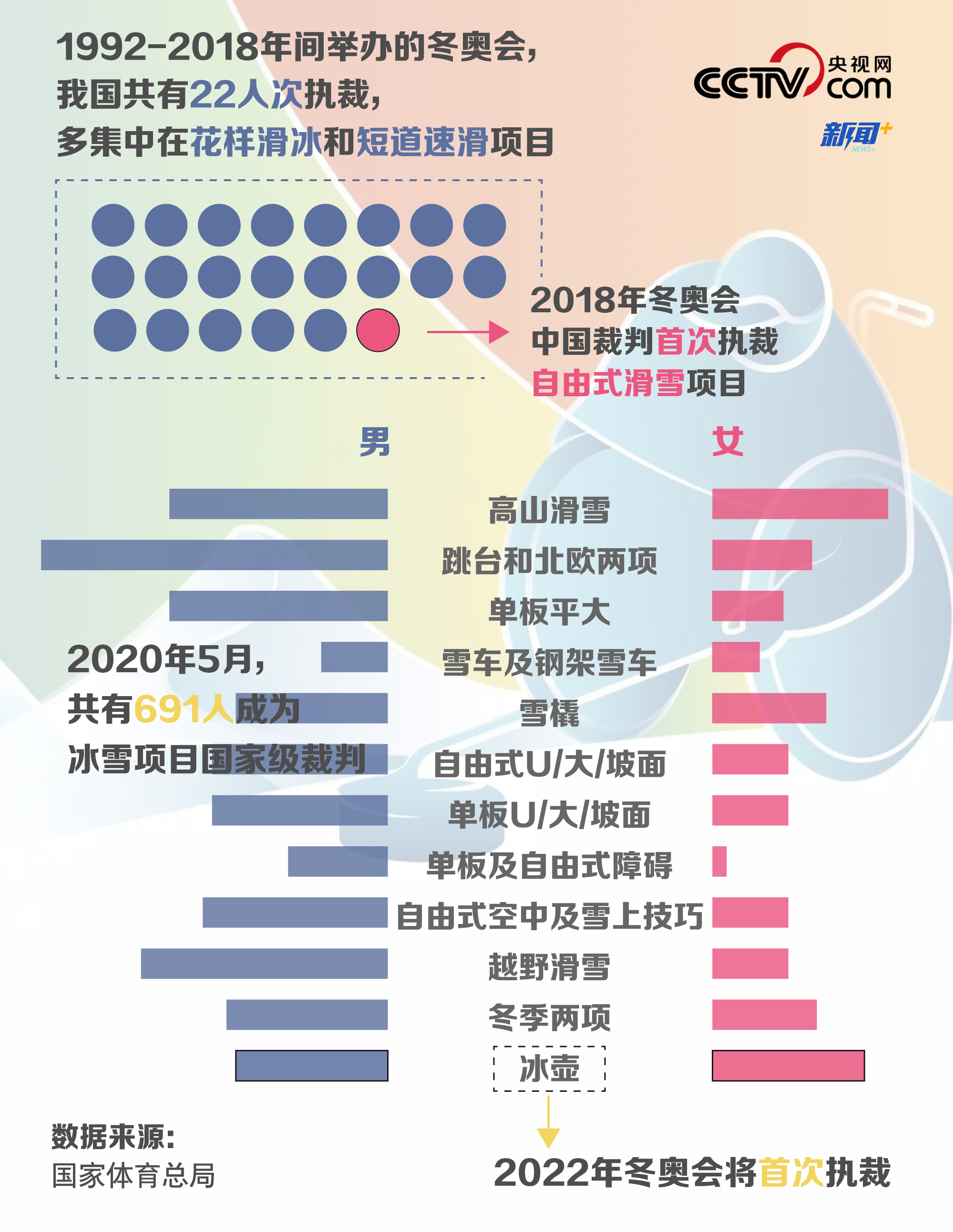 除了選手們?cè)谫悎?chǎng)上大放異彩,冬奧會(huì)賽場(chǎng)上的裁判席也開(kāi)始出現(xiàn)“中國(guó)身影”。據(jù)統(tǒng)計(jì),1992-2018年的冬奧會(huì)中,我國(guó)共有22人次擔(dān)任裁判,2018年的冬奧賽場(chǎng)上出現(xiàn)首位自由式滑雪空中技巧項(xiàng)目的中國(guó)裁判。為更好地做好冰雪項(xiàng)目競(jìng)賽工作,體育總局冬運(yùn)中心于2020年5月授予691人冰雪項(xiàng)目國(guó)家級(jí)裁判員稱(chēng)號(hào),其中多為雪上項(xiàng)目裁判員。值得一提的是,2022年冬奧會(huì)將有4名中國(guó)冰壺裁判首次執(zhí)裁rSy安康新聞網(wǎng)