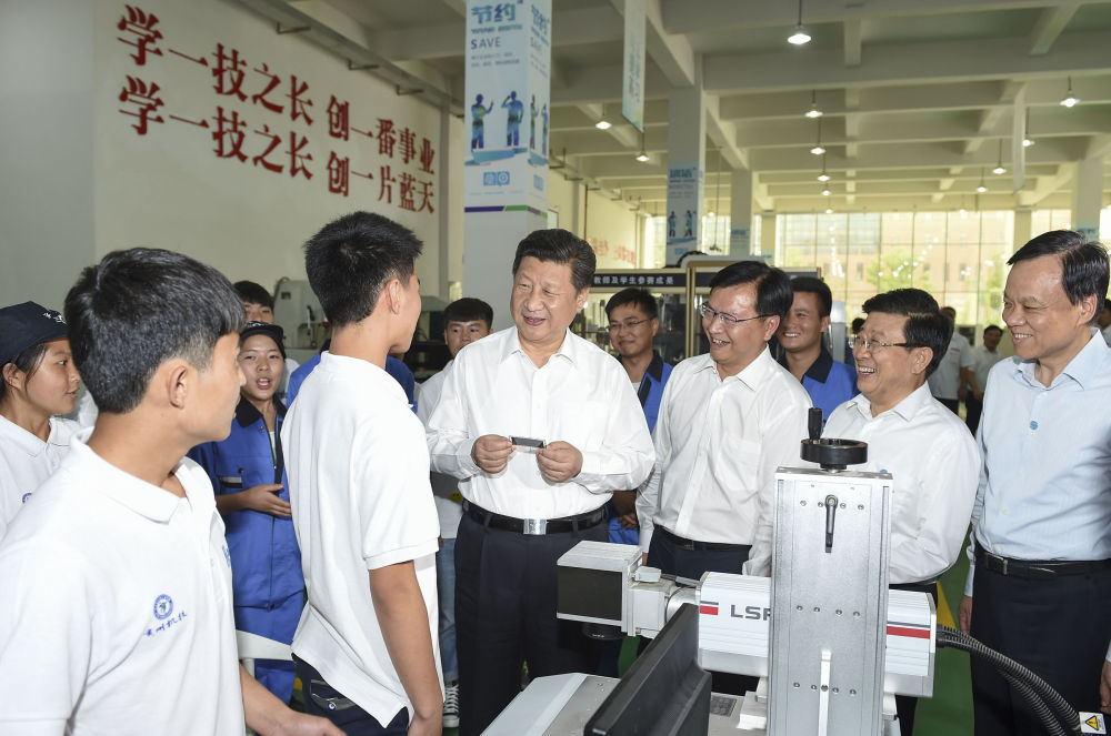 2015年6月17日,習(xí)近平在貴州省機(jī)械工業(yè)學(xué)校實(shí)訓(xùn)基地勉勵(lì)學(xué)生加強(qiáng)操作訓(xùn)練、不斷取得優(yōu)異成績(jī)。LFf安康新聞網(wǎng)