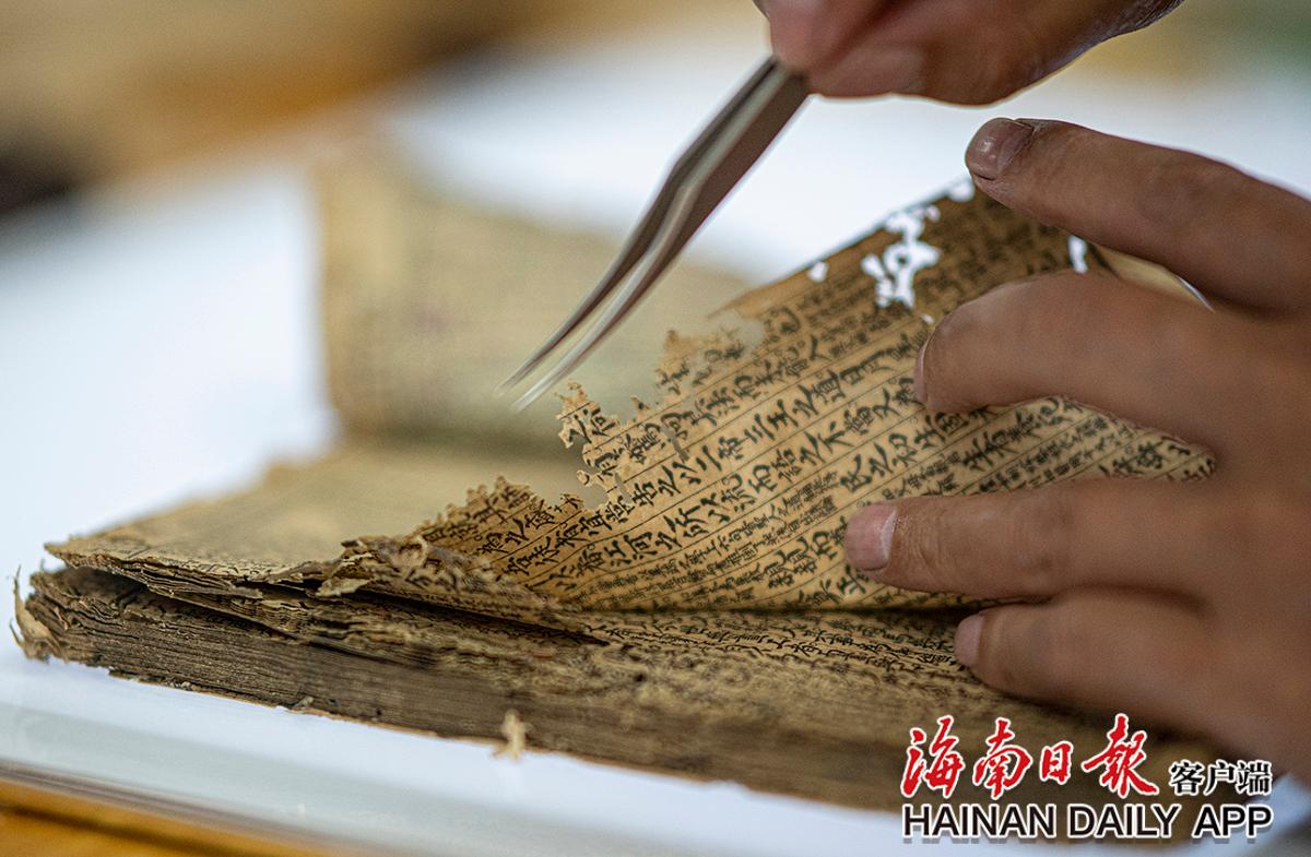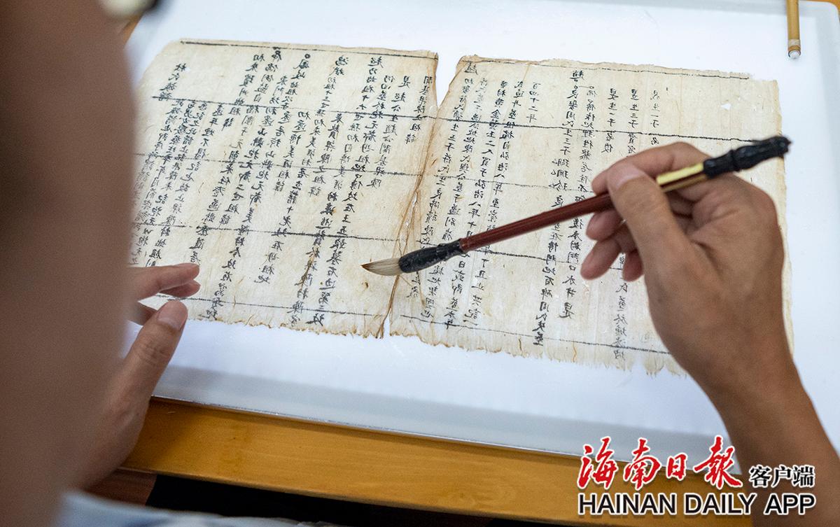 “2008年的時候,國家圖書館古籍保護(hù)中心有一項為期3個月的古籍修復(fù)培訓(xùn)計劃,當(dāng)時海南只有我一人報名參加。”黃文鋒答道,“在北京,我?guī)煆奈覈偶迯?fù)專家杜偉生,系統(tǒng)地了解和學(xué)習(xí)了所有的工序和技術(shù)。”