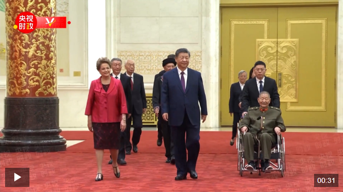 △獨家視頻丨習近平同國家勛章和國家榮譽稱號獲得者步入頒授儀式現(xiàn)場