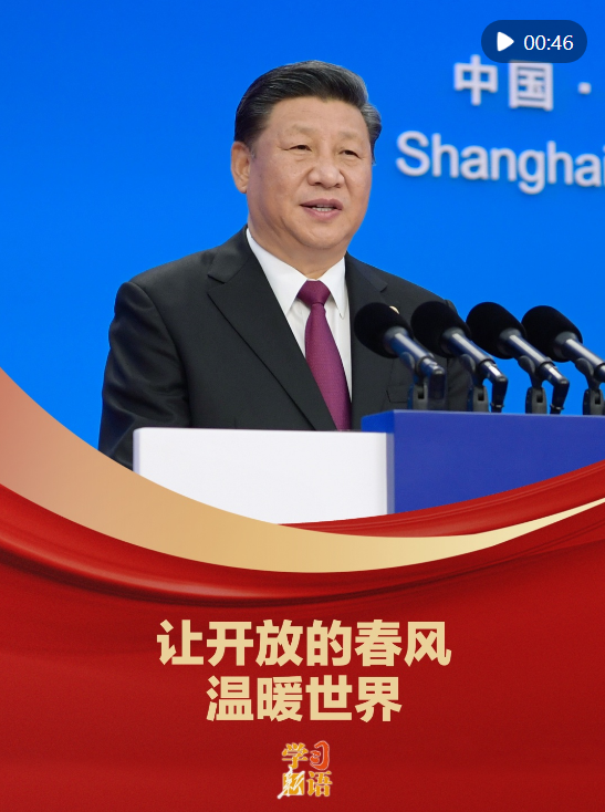 習(xí)近平主席曾在進(jìn)博會(huì)上,用三個(gè)“不會(huì)變”,詮釋了中國(guó)與世界共享機(jī)遇、互利共贏的胸懷與擔(dān)當(dāng),展示了堅(jiān)定不移的開(kāi)放決心。進(jìn)博之約向世界許下中國(guó)之諾:中國(guó)愿同各國(guó)一道,共建開(kāi)放型世界經(jīng)濟(jì),讓開(kāi)放的春風(fēng)溫暖世界!