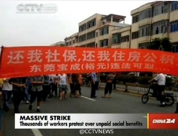 東莞最大鞋廠幾千工人抗議廠方社保標(biāo)準(zhǔn)過(guò)低5日,廣東東莞最大鞋廠—裕元鞋廠幾千名員工因質(zhì)疑廠方以臨時(shí)工標(biāo)準(zhǔn)為工作十多年的員工購(gòu)買社保,與員工簽訂無(wú)效……