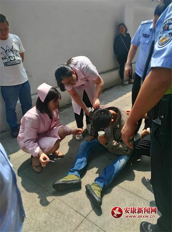安康新聞網(wǎng)訊(通訊員 屈閔)5月15日的早晨,郵政廣場移動(dòng)獻(xiàn)血房車的工作人員像往常一樣忙碌著,組長孫廉敏坐在體驗(yàn)桌前耐心地為前來獻(xiàn)血的愛心人士測量血壓,正當(dāng)她填寫體檢表時(shí),一位小姑娘沖過來慌張地對她說:“醫(yī)生姐姐,你能過去看看,那邊有個(gè)人暈倒了!”孫廉敏一轉(zhuǎn)頭就看見離獻(xiàn)血車不遠(yuǎn)的地方躺著一名男子,她扔下筆沖了過去,跪在了男子身邊,拍著他的肩膀大聲呼喊,而男子卻沒有什么反應(yīng),孫廉敏立即撥打了120急救電話,接著給他測量了血壓,發(fā)現(xiàn)一切正常后,便請一起趕來的巡警同志幫忙扶起了男子。過了一會(huì)兒,男子似乎有了些意識(shí),嘴里嗚咽著,眼角還掛淚,孫廉敏判斷男子可能是遇到了什么傷心事,身體上沒有大礙,便趕緊讓同事潘冬妮拿來兩支葡萄糖,慢慢給他喂下。大約過了十分鐘,男子意識(shí)逐漸清醒了過來,他告訴巡警,自己是外地人,來安康務(wù)工,被人騙了,現(xiàn)在回不了家,體力不支才暈了過去,在最終確認(rèn)了身體沒有大礙后,巡警便帶著男子去了救助站。