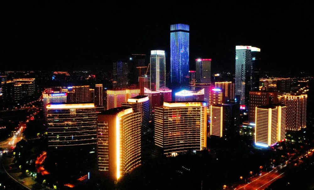↑西安高新區(qū)都市之門(mén)區(qū)域夜景(4月30日攝,無(wú)人機(jī)照片)。新華社記者 劉瀟 攝