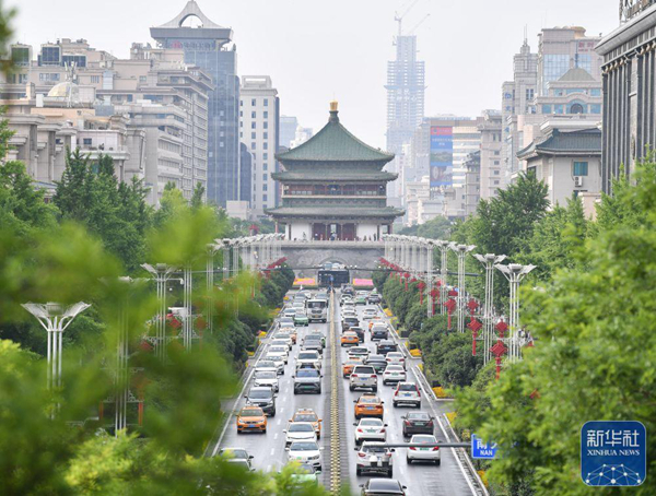 ↑這是5月16日拍攝的西安鐘樓。新華社記者 李一博 攝