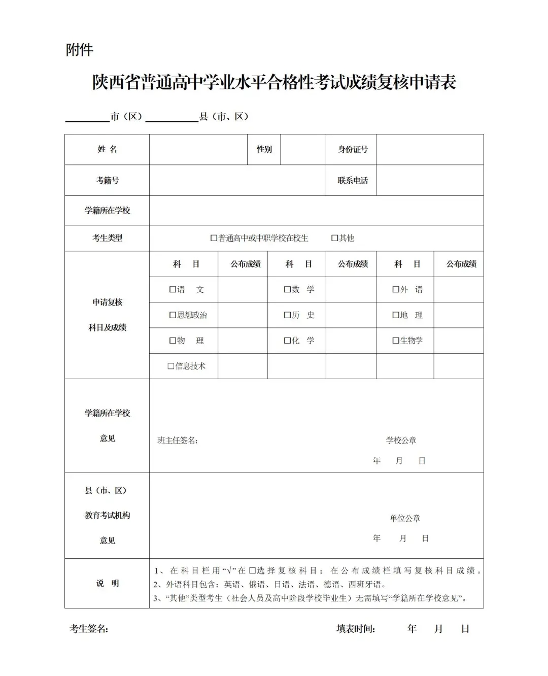 附件:陜西省普通高中學業(yè)水平合格性考試成績復核申請表hhM安康新聞網