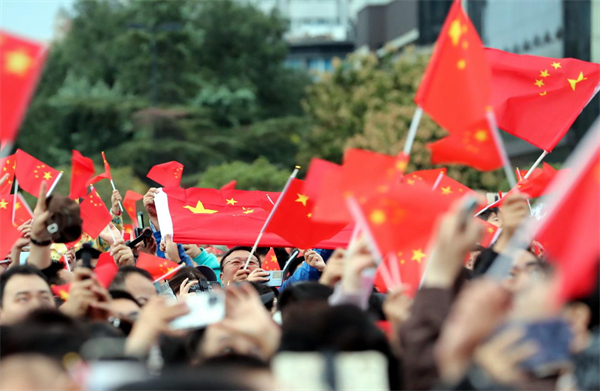 隨后,在《歌唱祖國》的奏樂中,人們揮舞著手中的國旗,盡情唱響愛國贊歌,表達(dá)愛國之情。Ujh安康新聞網(wǎng)