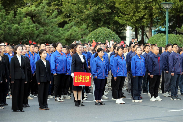 企業(yè)職工代表參加升國旗儀式。Ujh安康新聞網(wǎng)
