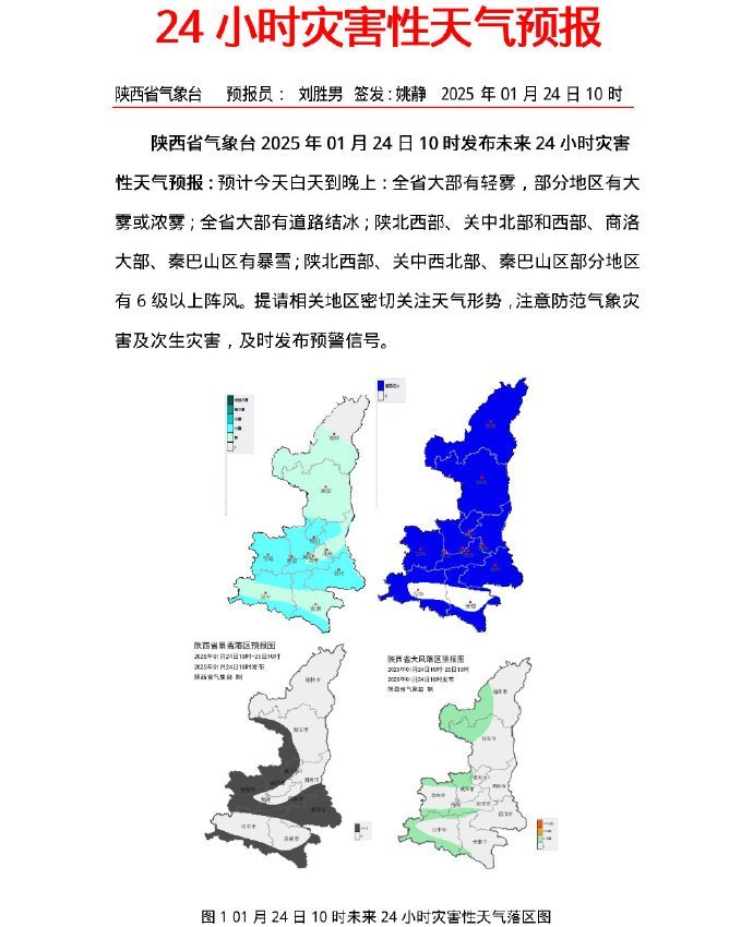 陜西省氣象臺(tái)2025年01月24日10時(shí)發(fā)布未來(lái)24小時(shí)災(zāi)害性天氣預(yù)報(bào):265安康新聞網(wǎng)