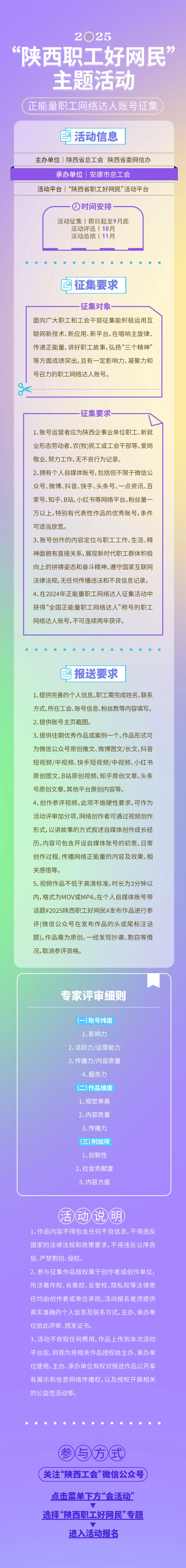 2025年“陜西職工好網(wǎng)民”正能量職工網(wǎng)絡(luò)達人賬號征集