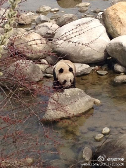 西部網(wǎng)訊(記者 熊惠玲) 今天(3月20日)中午12點(diǎn)左右,在陜西洋縣華陽鎮(zhèn)景區(qū),一只野生大熊貓光顧了景區(qū)內(nèi)的鴛鴦河,由于被人群圍觀,這只大熊貓?jiān)诤舆吪腔膊弧?/div>
