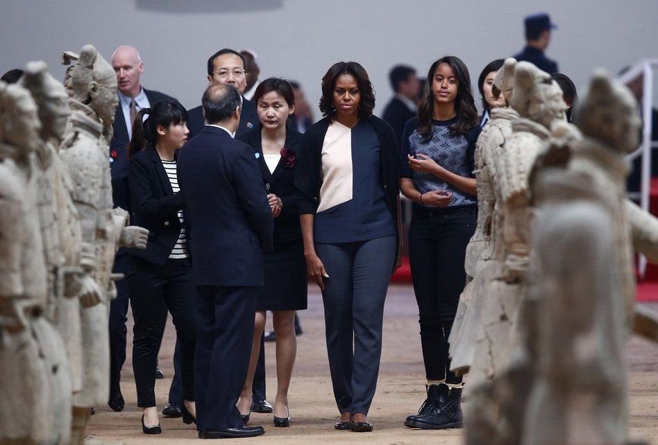2014年3月24日,西安,美國“第一夫人”米歇爾抵達(dá)西安,根據(jù)行程安排,他們一行將參觀秦始皇兵馬俑并登上城墻,感受千年古都的魅力!