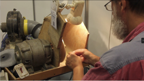 一位波蘭技師正用機器磨具磨制一塊琥珀原石。人民網(wǎng)記者 暨佩娟攝4mE安康新聞網(wǎng)