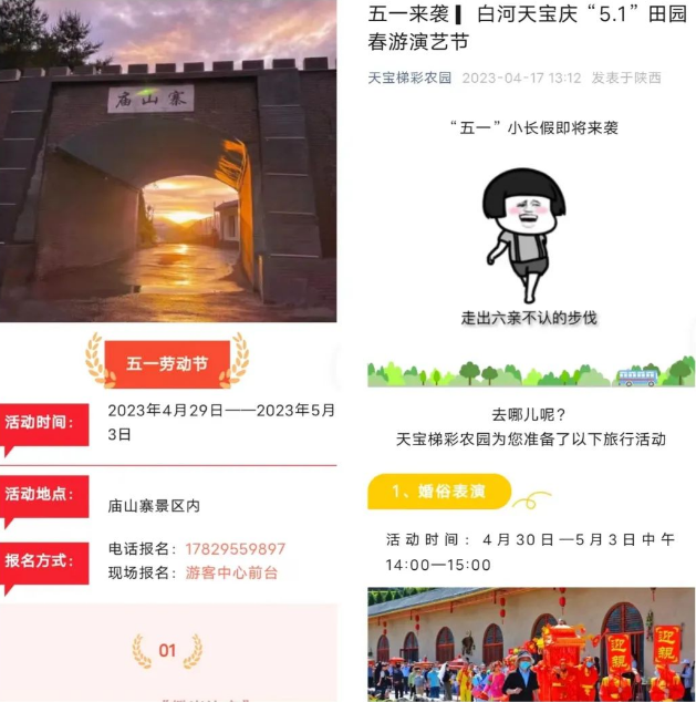 景區(qū)景點(diǎn)開(kāi)放到位。“五一”期間,3家A級(jí)景區(qū)景點(diǎn)全部正常開(kāi)放。其中天寶4A景區(qū)從4月29日至5月3日籌備舉辦田園春游演藝節(jié)系列活動(dòng),推出門(mén)票七折優(yōu)惠措施;廟山寨3A景區(qū)將舉辦“廟山”好聲音、攀巖比賽等節(jié)慶活動(dòng),推出138元游玩通票打五折、門(mén)票+餐飲立減等優(yōu)惠措施。Lek安康新聞網(wǎng)