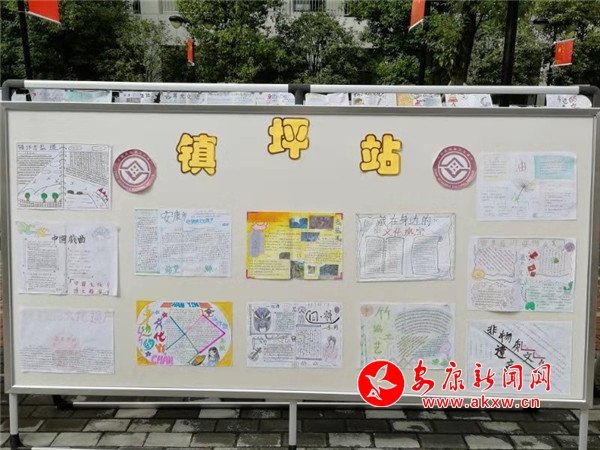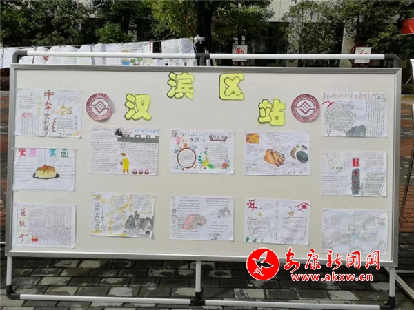 此次展板按地域文化特色,分為漢濱區(qū)站、旬陽平利站、漢陰石泉站、鎮(zhèn)坪站、紫嵐寧站五大板塊。每一張手抄報(bào),從設(shè)計(jì)到排版,從書寫到繪畫,都各具特色:這里面有對(duì)壯美河山的贊美,有對(duì)雄偉建筑的欽佩,有對(duì)安康區(qū)縣奇觀異景、民俗文化的自豪……圖文并茂的手抄報(bào)吸引了全校師生駐足觀賞,嘖嘖稱贊,更有學(xué)生拿著紙筆認(rèn)真地做記錄。