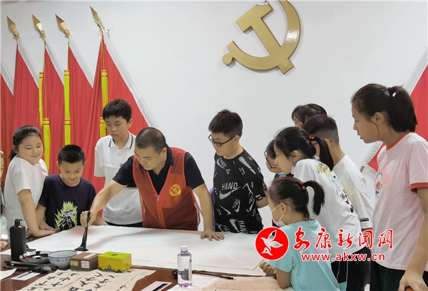 在羅軍書記不辭辛苦耐心指導(dǎo)下,不僅讓孩子們對書法有了初步了解,而且從中體驗(yàn)到了書法的妙趣,陶冶了情操,現(xiàn)場氣氛其樂融融。