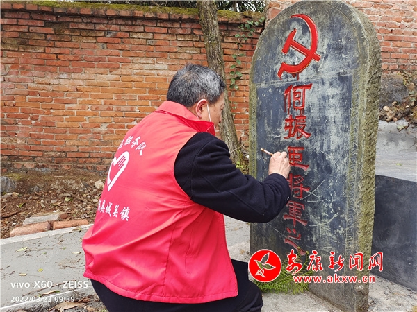 活動現(xiàn)場,該鎮(zhèn)10余名書法志愿者們向烈士鞠躬后,便小心翼翼地把墓碑上面的灰塵刷去,開始嚴(yán)肅認(rèn)真地一筆一劃為烈士墓碑描摹碑文。每一筆,都刻畫了志愿者們對先烈們的沉痛追思;每一畫,都描摹著對新生活的無限感激。經(jīng)過3個多小時的努力,40余座革命烈士墓碑的字跡煥然一新,在陽光的照耀下,顯得格外清新醒目,志愿者們露出了欣慰的表情。