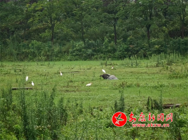 本網(wǎng)訊(通訊員 陳小惠)青青綠草地,牛伏月水畔,鷺鷥?nèi)逯唬c牛共棲息。日前,在漢陰縣澗池鎮(zhèn)樅嶺村月河之畔,一頭水牛正悠閑地臥在草地上小憩,幾只白鷺時而單腳站立在牛背上,時而俏皮地繞牛飛翔,構(gòu)成一幅優(yōu)美的動態(tài)畫卷。rNc安康新聞網(wǎng)