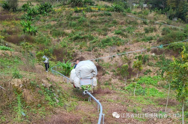 2022年,常州市新北區(qū)對(duì)口幫扶嵐皋縣聯(lián)絡(luò)組專門撥付蘇陜協(xié)作資金350萬元,為當(dāng)?shù)匕l(fā)展獼猴桃、碧根果等產(chǎn)業(yè)的村子安裝山地軌道運(yùn)輸車20公里,直接讓3500畝土地的種植戶受益。軌道運(yùn)輸車的安裝,讓當(dāng)?shù)厝罕姀拇烁鎰e了依靠人力肩挑背扛的歷史。包括獼猴桃、黃豆、紅薯等在內(nèi)的所有莊稼,從此在地里收獲后,只需要主人裝入軌道運(yùn)輸車,就可以直接送到農(nóng)用車上,然后拉回家。QXR安康新聞網(wǎng)
