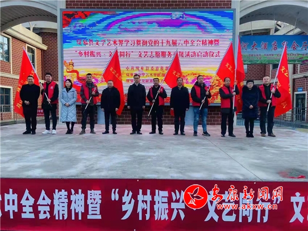 縣委宣傳部、縣文聯(lián)、新時代文明實(shí)踐中心、鄉(xiāng)村振興局、文廣旅游局負(fù)責(zé)人參加啟動儀式并為縣文聯(lián)文藝志愿服務(wù)小分隊(duì)授旗。來自書畫協(xié)會、作家協(xié)會、攝影家協(xié)會、音樂家協(xié)會及美術(shù)志愿服務(wù)者共40余人參加活動。