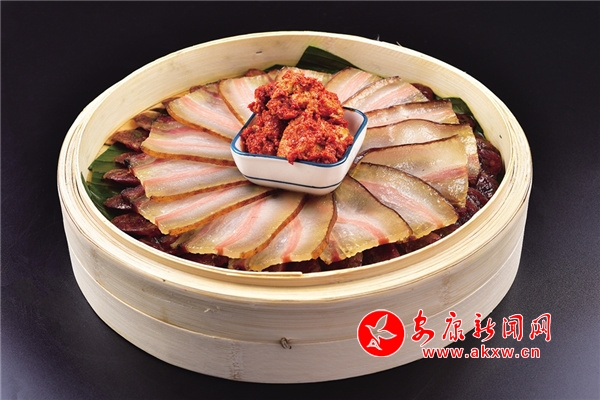砧板臘肉:松果碳木熏制的臘肉,只需經(jīng)過簡單的加工,即可做出美味的食品,這是地地道道的嵐皋巴人美食。