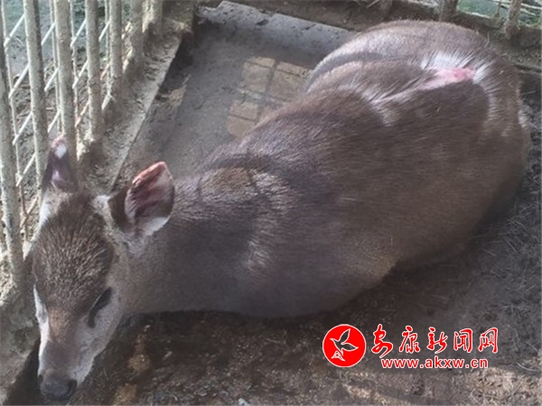 據(jù)了解,當(dāng)時(shí)四畝地村村民茍興成正沿著河邊往家走,突然發(fā)現(xiàn)有一動(dòng)物在河里掙扎,仔細(xì)一看好像是一頭“青麂子”掉河里了,老茍立即喊了幾個(gè)村民一起將它救上了岸,村民們發(fā)現(xiàn)它受傷了,于是報(bào)了警,附近寧陜榮庚生物科技有限公司林麝養(yǎng)殖場(chǎng)的工作人員得知消息后拿來了養(yǎng)殖場(chǎng)的工具,對(duì)“青麂子”進(jìn)行了暫時(shí)安置。